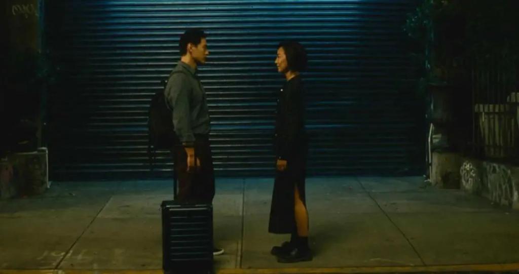《过往人生》接近结尾的一场戏将 " 过去 " 与 " 未来 " 的意象推到了极致。海盛在离开纽约的前夜和诺拉、亚瑟小酌到凌晨,然后三人回公寓拿行李,海盛打车去机场。短暂的重逢迎来了必然的告别,诺拉跟着海盛走出公寓,送他去网约车的上车点。