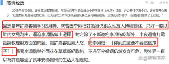 ——女星许嘉容怀孕三个月豪门男友出轨,她挺肚逼婚得偿所愿,安稳 14 年突然被要求净身出户,她毫无招架之力,连孩子都见不到。