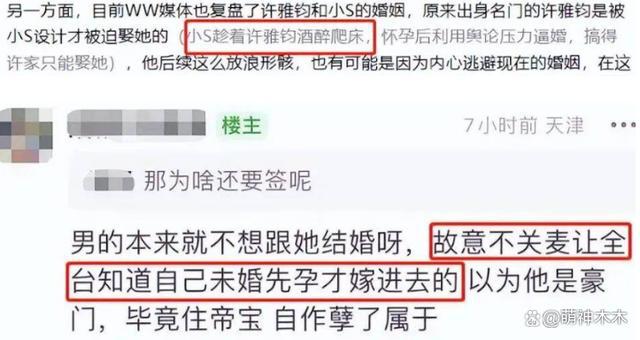 更别提那些外强中干的假豪门,女明星想方设法上位之后反而成了养家主力,小 S 当年故意不关麦克风靠着怀孕逼宫,如今被男方吸血,不知道这些年她有没有后悔过。