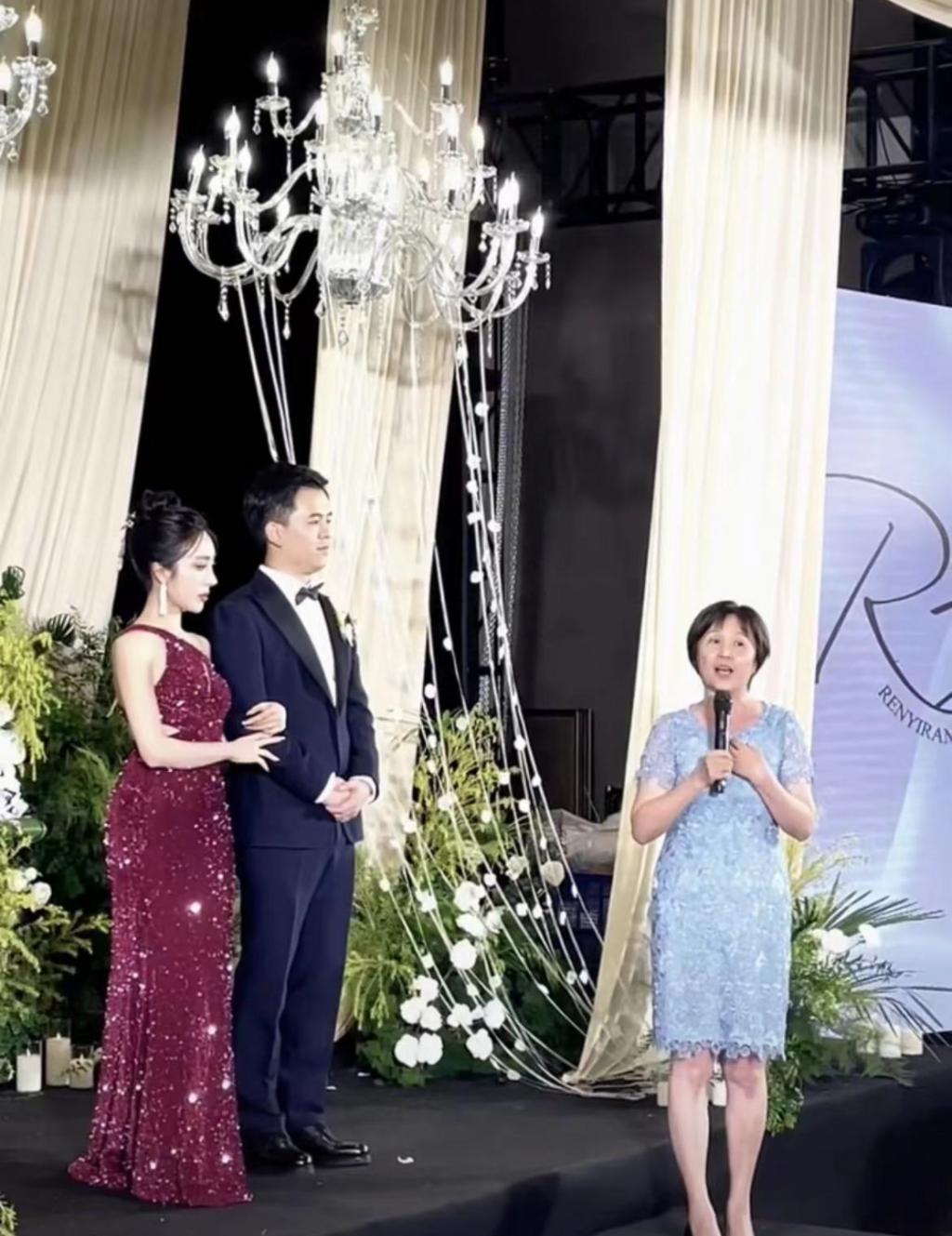 当天,还寒黄菡穿着一条名牌连衣裙,不知道是不是高跟鞋太高了,走路时踉踉跄跄。她脸上几乎素颜,身材这几年也有些微微发福。站在台上后,作为证婚人的她看向这对新人,全程面带这笑意,为他们送上了自己最诚挚的祝愿。