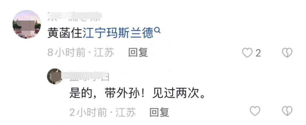 有网友表示自己是黄菡的邻居,她住在南京某独栋别墅区,通过搜索得知,该小区大多数都是千万元的豪宅。网友称经常能在小区看见黄菡带外孙的画面。