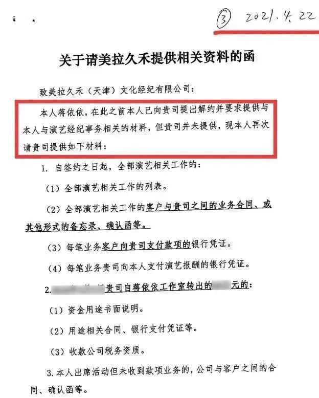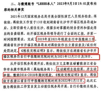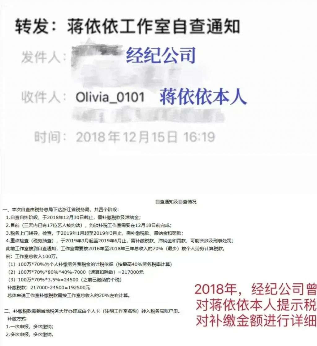 表示公司早就提醒过蒋依依税务方面有风险(有签字邮件等证明),但蒋未及时自查补缴 ~