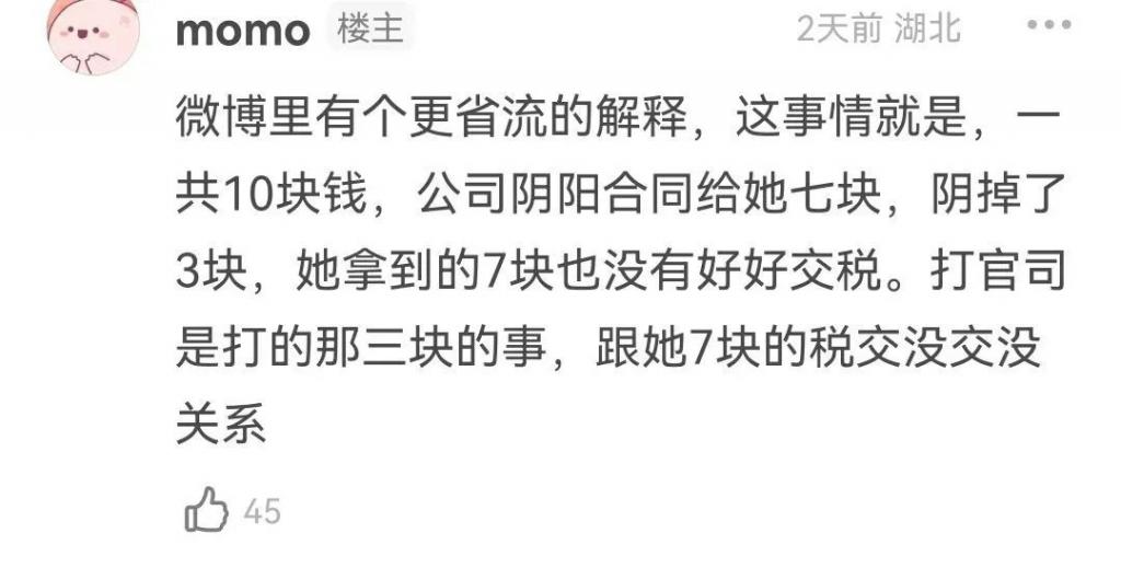 表示公司虽然瞒报收入导致蒋依依漏税,但蒋依依自身纳税也存在问题 ~