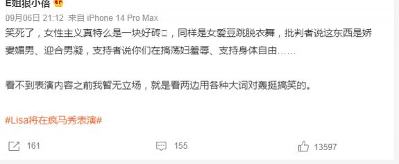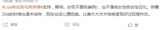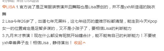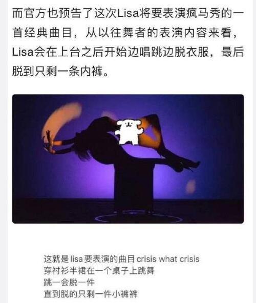 说给 Lisa 的表演服饰太短了,有性暗示啦,媚男啦