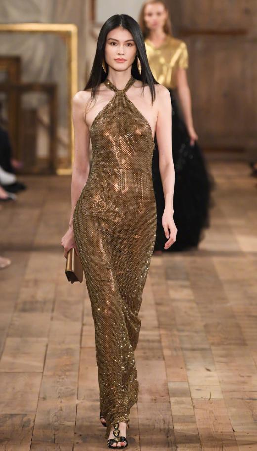 在时装周的秀场上,何穗惊喜亮相,身材好就不是不一样,这套略单调的挂脖礼服都被她穿出了性感,脸也还是那么绝,真的好美!
