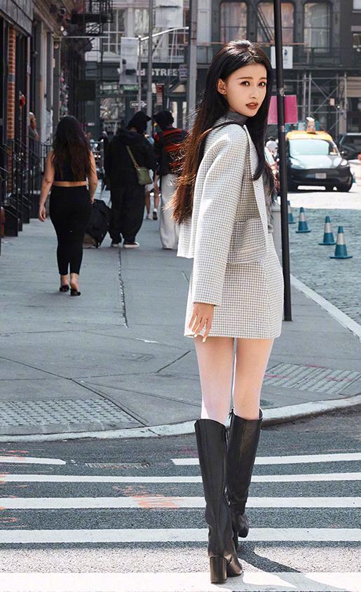 戚薇是真的很会穿,在街拍时就穿着黑裙和皮衣,全身散发着酷姐的气质,可以说是相当飒爽了。
