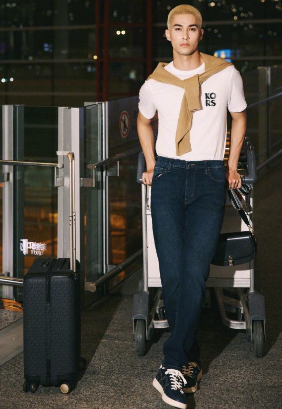 刚到纽约的米卡还没参加活动,但是出发照就很帅了,男模的身材和气场。