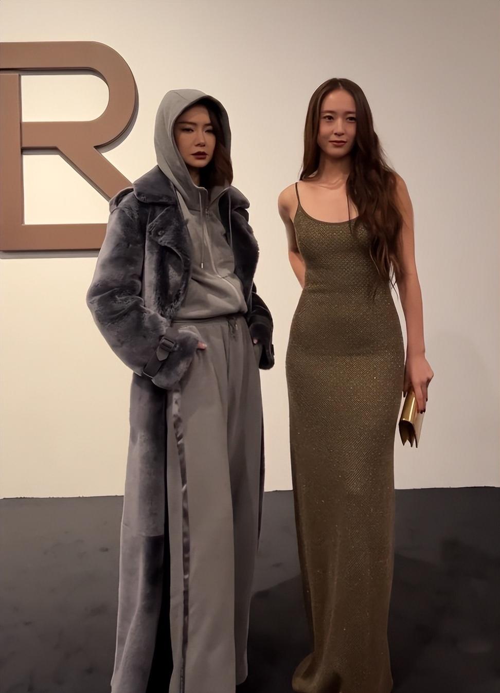 素人穿搭的戚薇和素人脸的郑秀晶,两人有点不相上下,完全看不出是明星合影。