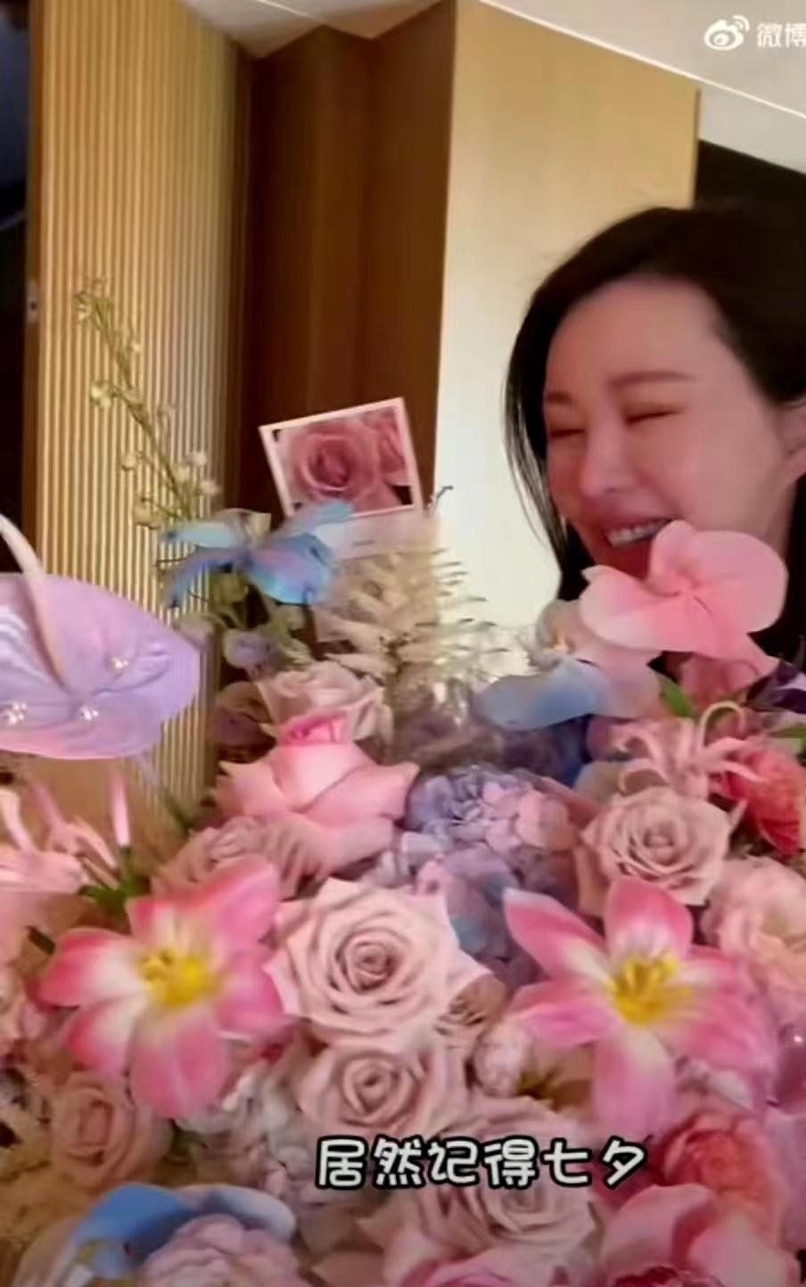 田朴珺七夕又出来秀恩爱了,老公王石送了自己一大束鲜花,高兴地嘴巴都合不拢,