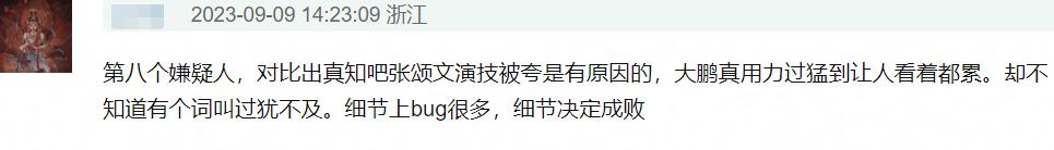 实际上,如果一部电影剧本糟糕、主演撑不住角色,那配角再出彩也没用,不管《第八个嫌疑人》张颂文戏份是多是少,都救不了大鹏呀。