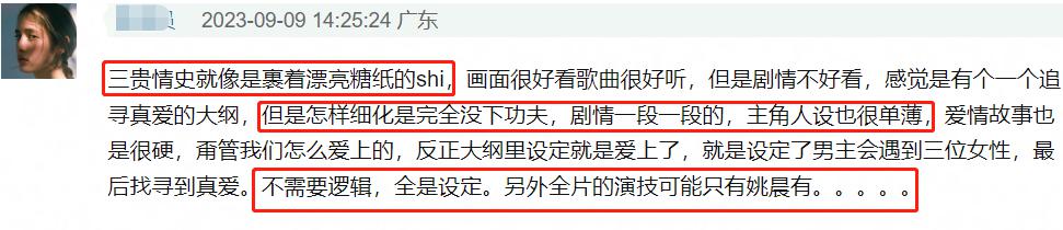 ——当然,这条差评肯定是玩笑话,应该是在指责《三贵情史》浪费了他的时间和金钱。