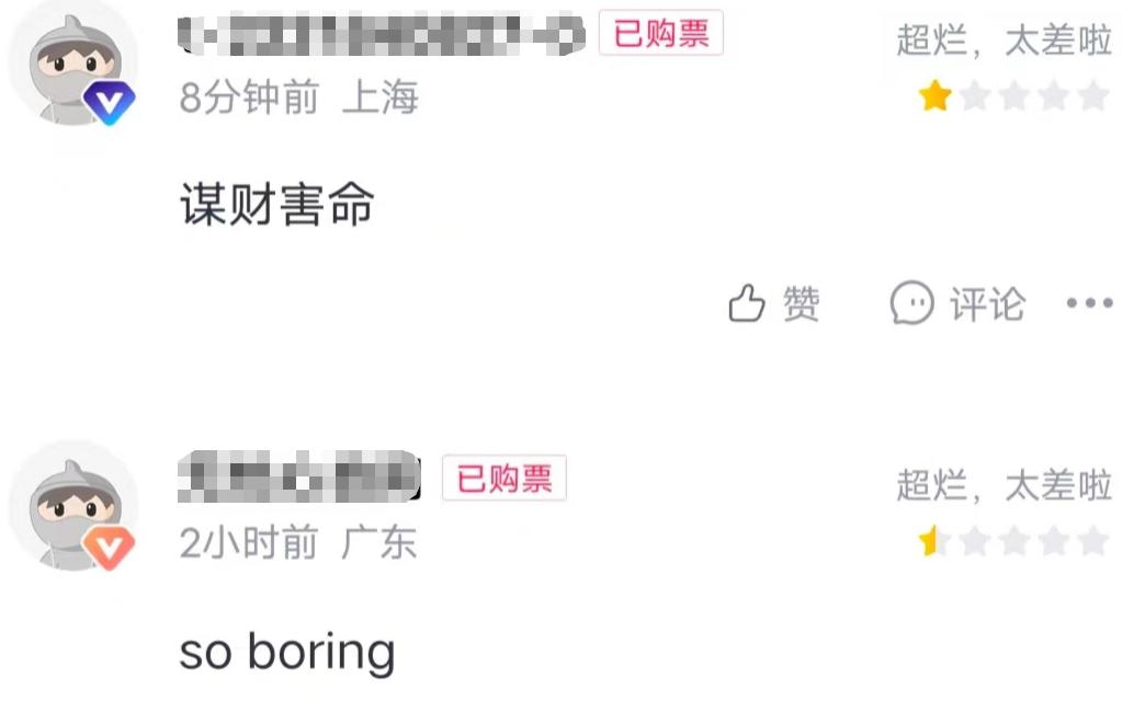 一般情况下,200 多万票房的电影,连差评都乏善可陈,结果《三贵情史》的评论区出现了一个极其精彩的评价,有观众表示这部电影 " 谋财害命 "。