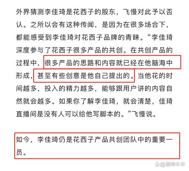 另外早年间花西子的创始人在接受采访时就透露过:李佳琦是花西子产品共创团队的重要一员,他会给产品提出创意,所以在卖货的时候自然而然就会说得多一些。