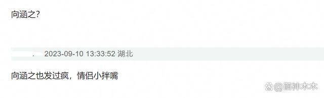 至于吴磊所爱之人是谁,评论区提名女星向涵之的大名。两人之前就传出恋爱绯闻,起源就是因为一张聊天截图,有网友表示照片中的女星就是吴磊女友,而那人正是向涵之。随后,又有娱记在线爆料称两人在合作影视剧时就互动暧昧,还透露是男方主动追求女方。对于这一传闻,女方多次否认,先是在和好友的直播中明确表示两人没关系,更表示这种传闻太无语。向涵之也因在直播中的言语表达,而遭到网友攻击。