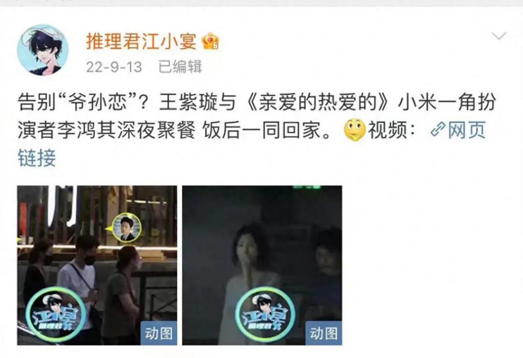 要知道李鸿其和王紫璇此前从未承认过谈恋爱,因此李鸿其此次公开称呼王紫璇为 " 爱人 ",无疑是在官宣恋情。