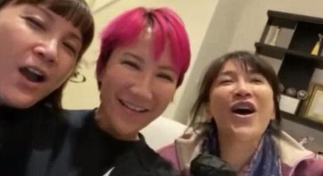 视频之中的甄妮分享动态视频,视频之中是李玟和两个姐姐的动态在一起合唱的画面。