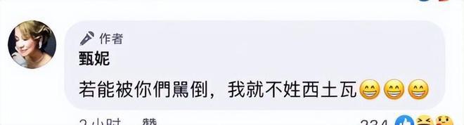 甚至很多黑粉在甄妮个人账号留言的时候,甄妮站出来表态自己也曾遭到各种各样的威胁,但自己如果被打倒的话,自己就不会叫 " 西土瓦 "!