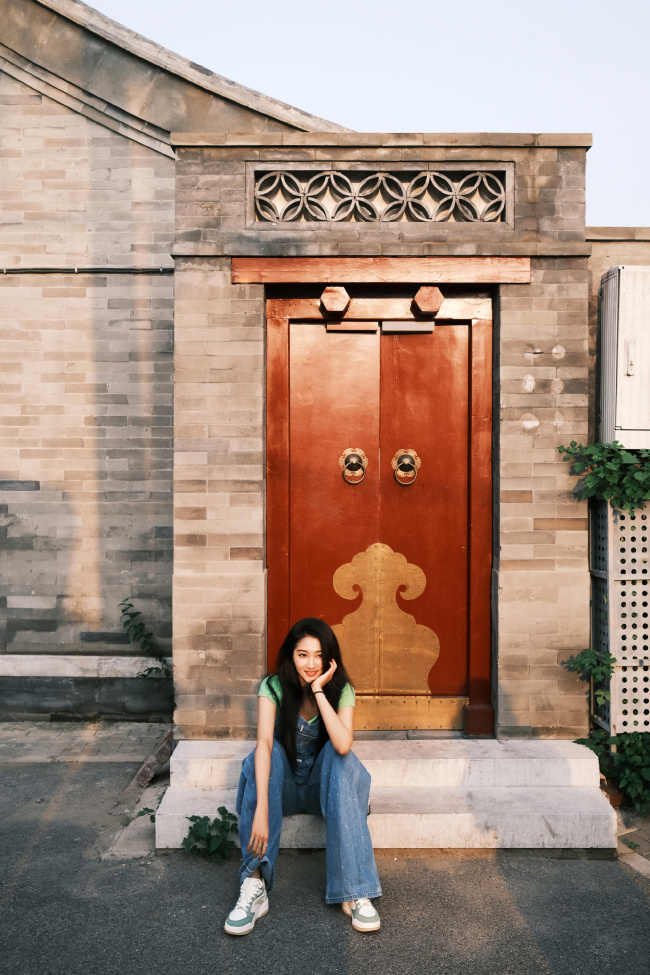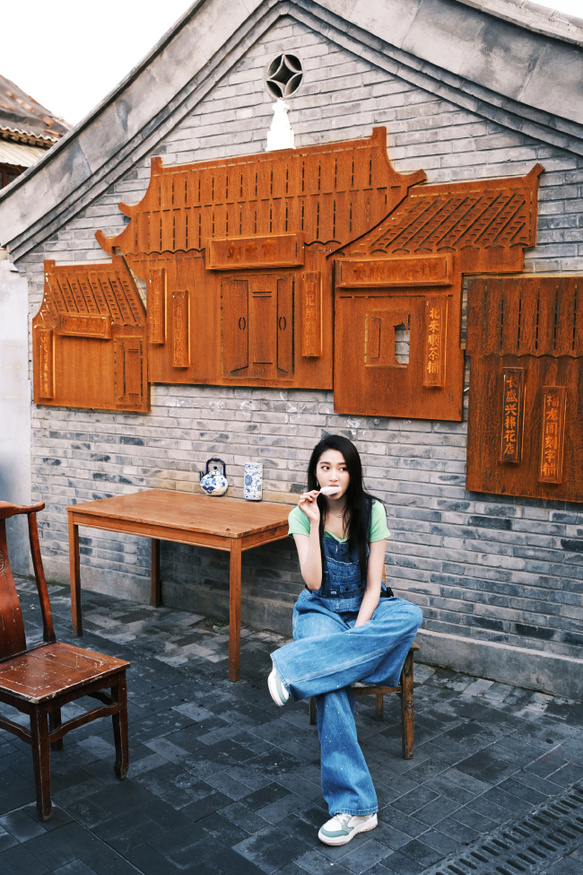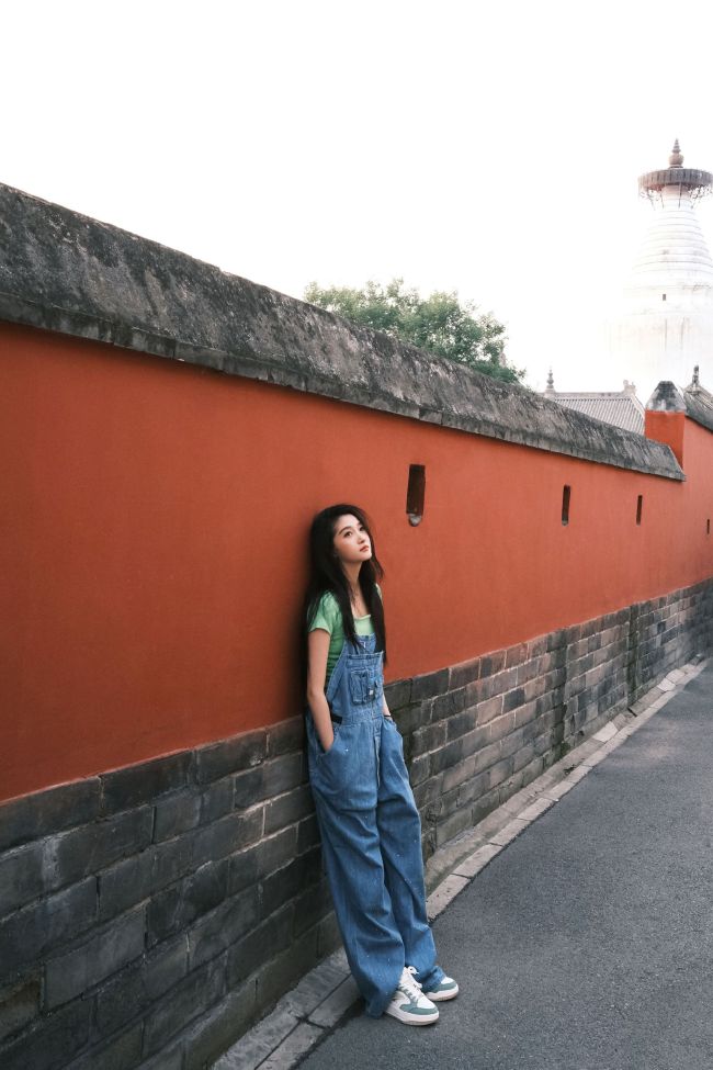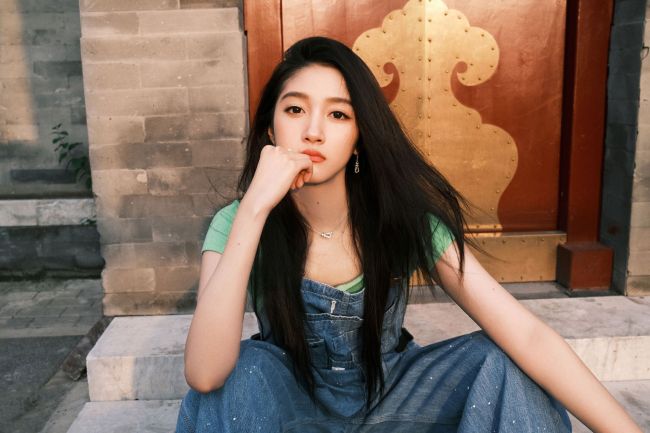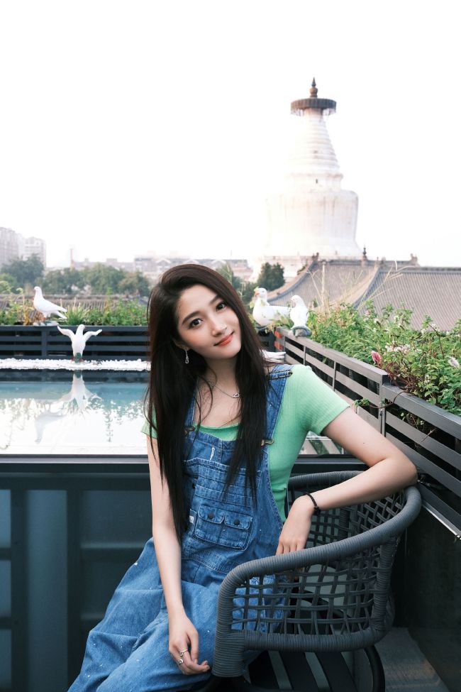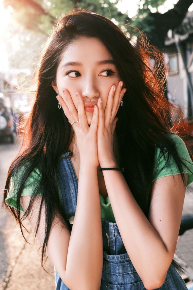 关晓彤穿背带裤活力满满 捧脸嘟嘴卖萌