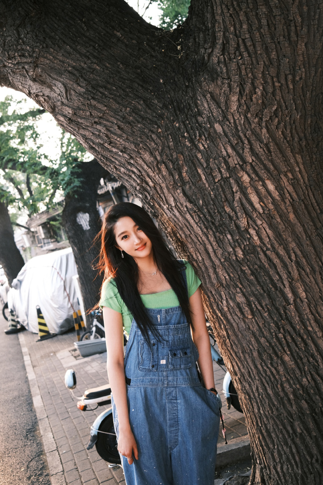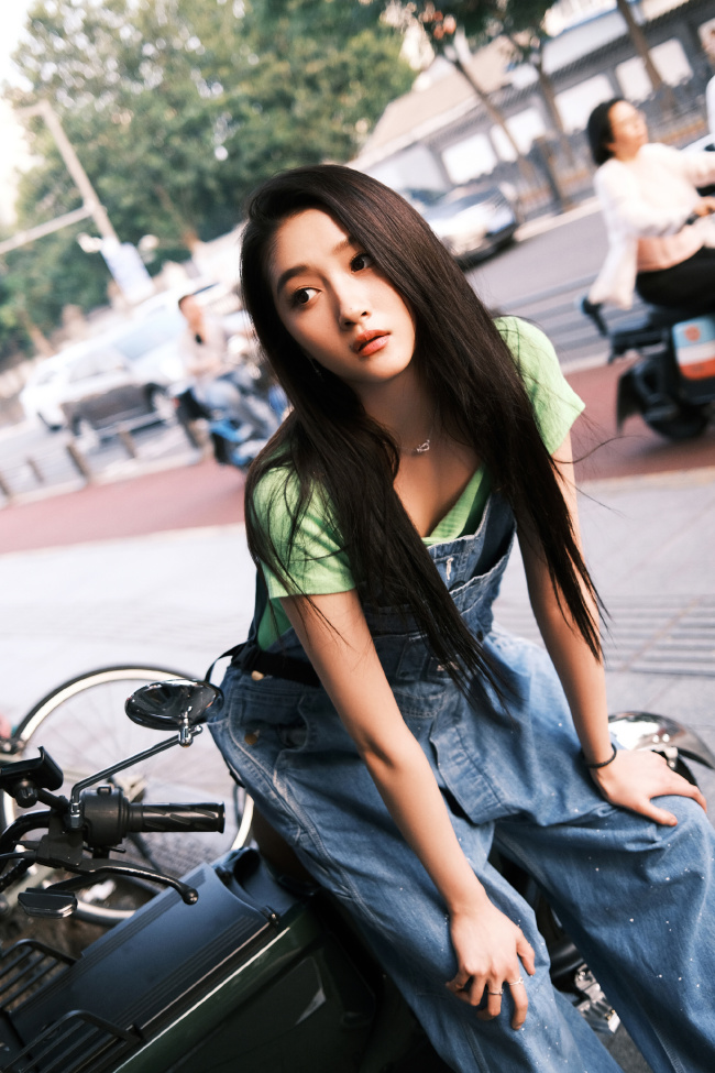 关晓彤的一组美照曝光,她身穿绿色针织短袖搭配背带牛仔裤,整个人活力满满,在镜头前捧脸嘟嘴卖萌。