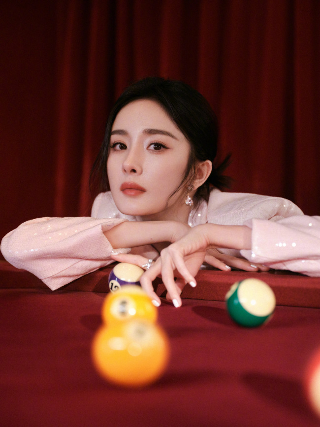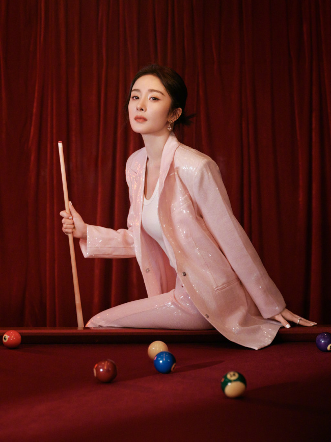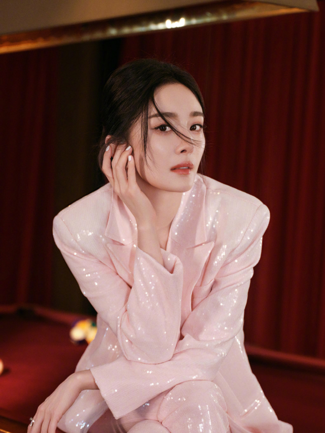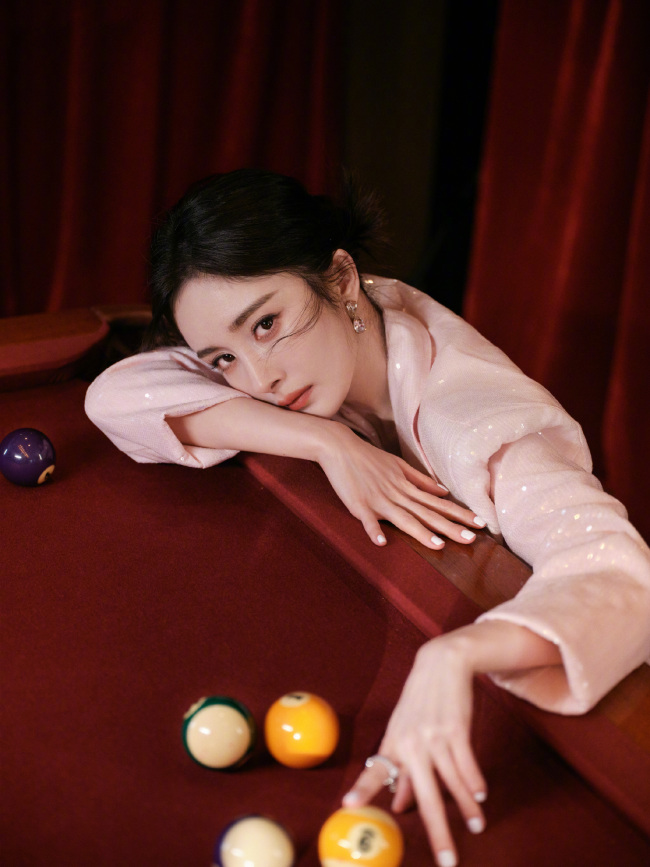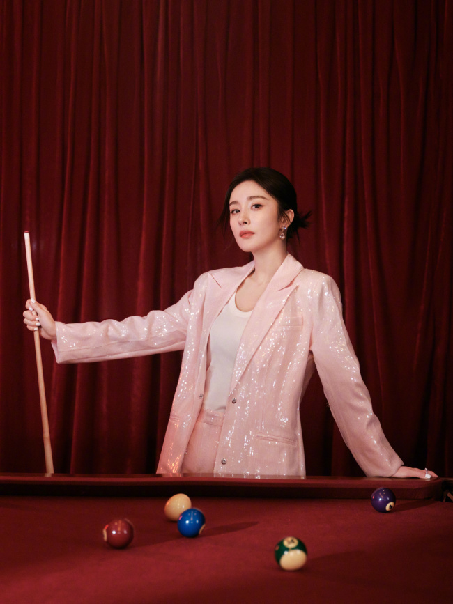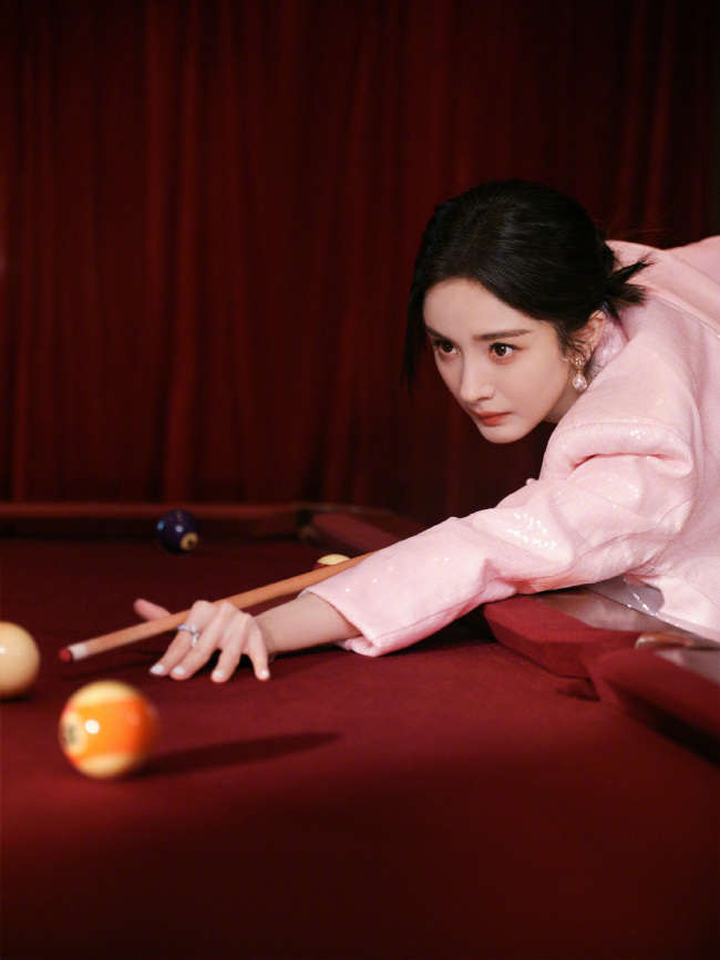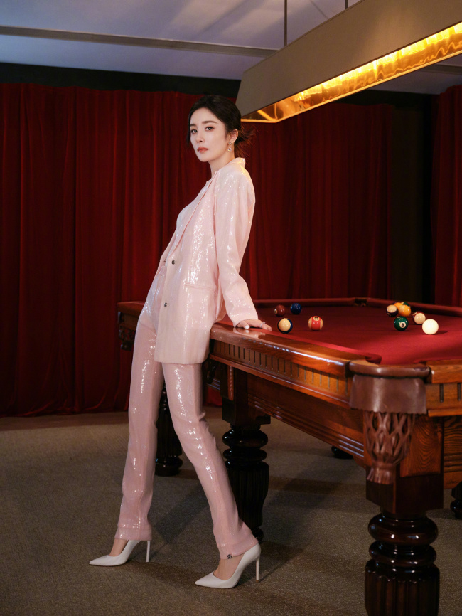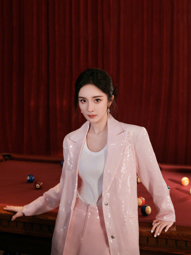杨幂的一组美照曝光,她身穿粉色亮片西装又甜又飒,妆容精致颜值吸睛,玩台球气场全开似女王。