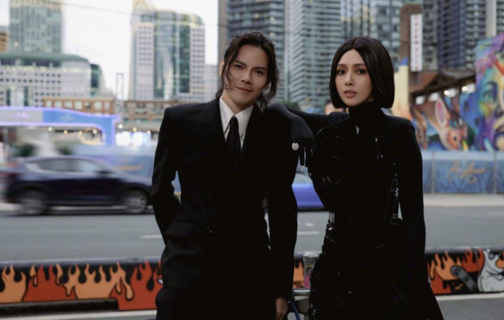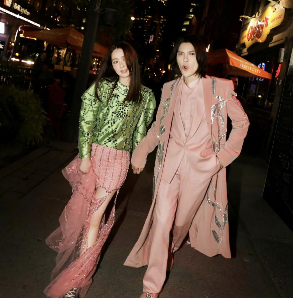 为了配合郭碧婷的这一套造型,向佐还换了一套粉红色的长款西装。