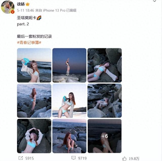 5 月 11 日,徐娇晒出一组穿比基尼的泳装照,引发争议。