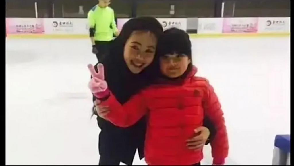 体育界:世界花滑冠军陈露指导她滑冰。↓