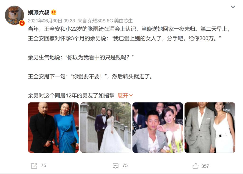 举行婚礼第二年,王全安深陷 " 嫖娼门 " 风波。