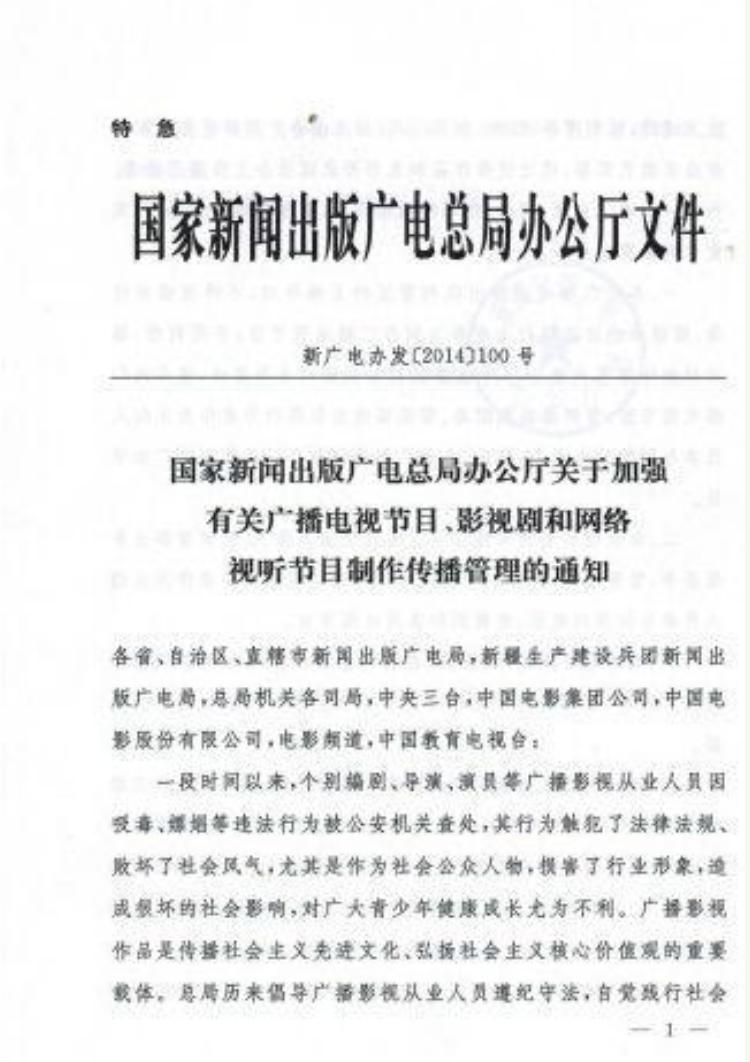 在 " 嫖娼门 " 事件当年,广电总局就下达了文件通知。
