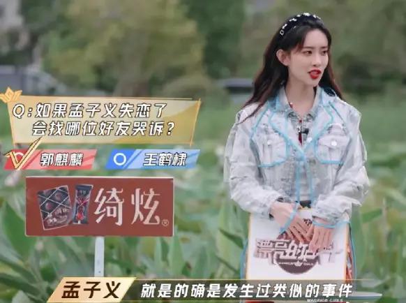 上节目期间,她遇到一个酱紫的问题 " 如果孟子义失恋了会找哪位好友哭诉 "。