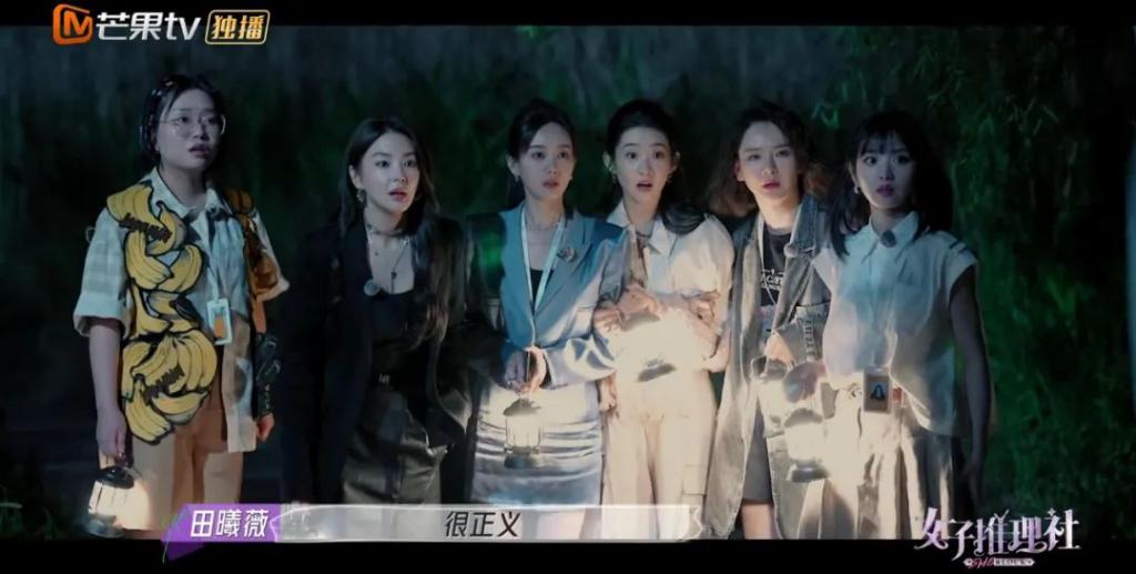 女推团每一个成员都让我感受到女孩子的美好:戚薇的组织和控场能力、张雨绮跟 NPC 自来熟的交际能力、李一桐的细心,每个跟案情有关的小细节她都不忘记录和整理、李雪琴的高智商和田曦薇的勇敢,还有最胆小也是成长最快的张艺凡,她总能找出别人留意不到的物证。