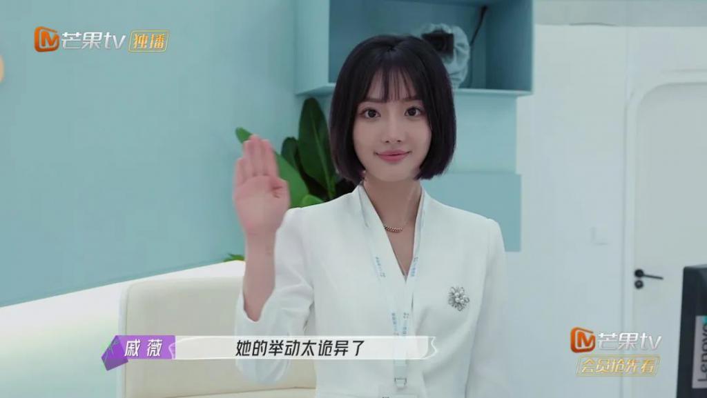迎迎是节目里留着娃娃头,有着软糯娃娃音的公司前台,最后两期她被反派关在地下室里浑身是伤,动弹不得。就是这么一个看似柔弱不能自理的女孩扛住了严刑拷打,没有出卖女推团还给她们传递了消息。