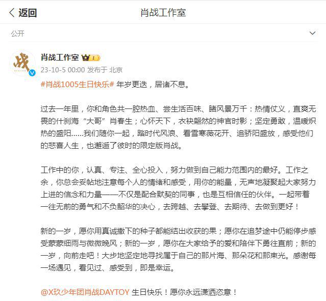 10 月 5 日是肖战的 32 岁生日,当天零点零分的时候,肖战工作室也在社交平台上分享了一组十八宫格的照片,并且配上了一篇小作文,总结了肖战在过去的这一年时光里,给我们带来了各种精彩的角色,也称赞了他的良好品格,确实是一位相当优秀的文艺工作者了,再一次的圈粉无数了。
