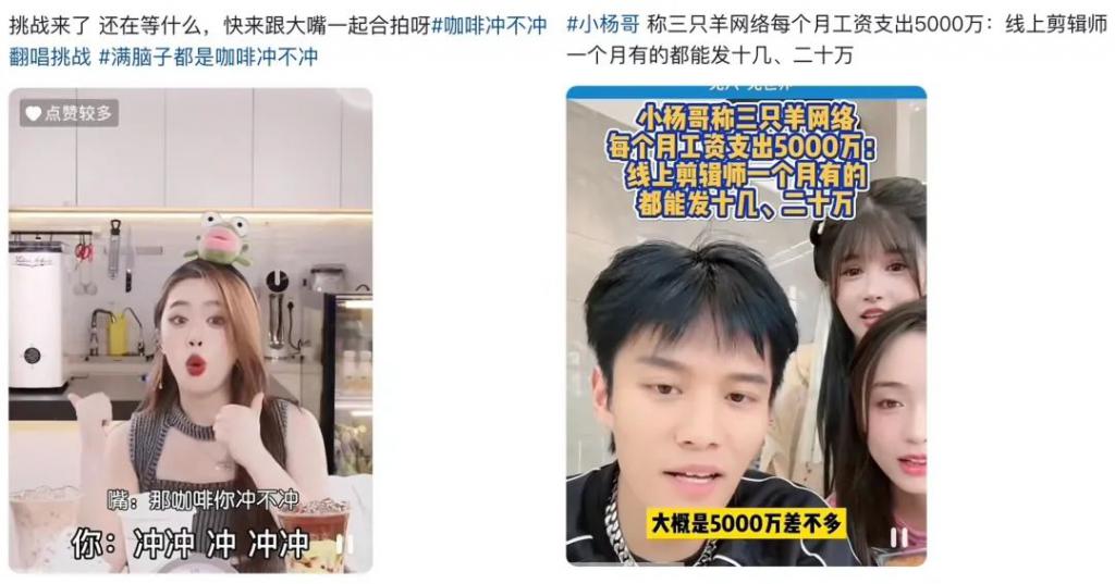 凌达乐这样的 " 乐子 " 也并非个例。以一句 " 咖啡你冲不冲 " 和标志大嘴走红的 " 大嘴妹 " 现在也已月薪三十万,前段时间刚提了自己的第一辆保时捷帕拉梅拉;早年还在厂子里干活的疯狂小杨哥,已经花 1.03 亿在合肥买楼,今年更是自曝月花 5000 万给高管发工资。