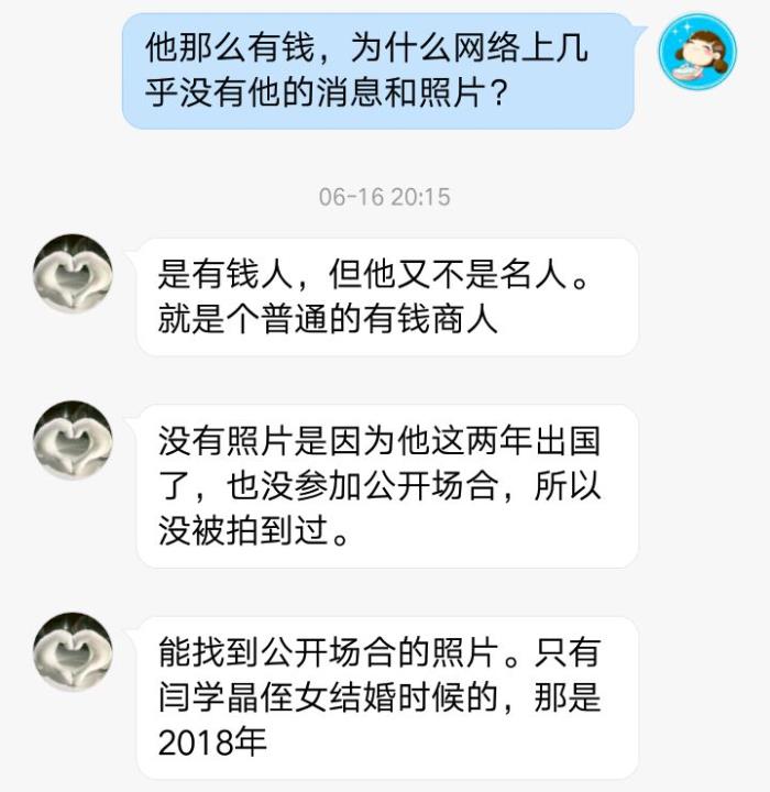 随后,有读者给我发来了私信,并给我发来了应该是马明东公开露脸的唯一的一张照片。这张照片是闫学晶和马明东在参加闫学晶的侄女的婚礼时被人拍下的。而后该读者还和我大概地聊了一些关于闫学晶和林越、马明东三人之间的事情。