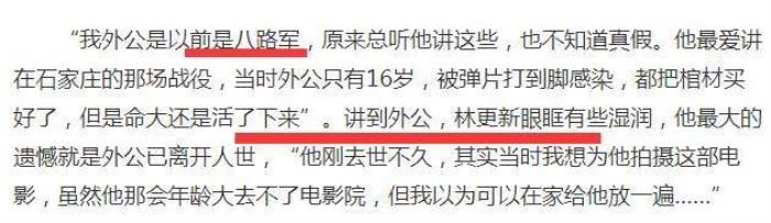 有知情人透露林更新爷爷也是个来头不小的人哦。