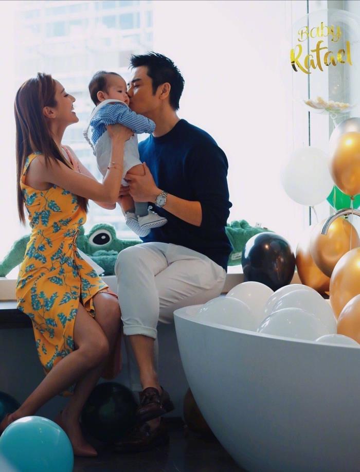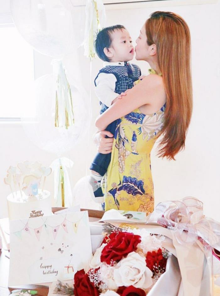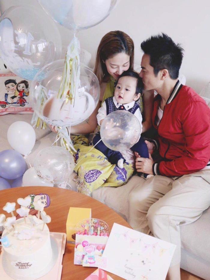 郑嘉颖则身穿红色外套和宽松长裤,真的是对孩子爱得深切,直接亲在头发上,爱意满满。两人也为孩子举行了非常精致的生日蛋糕和气球,超有仪式感。