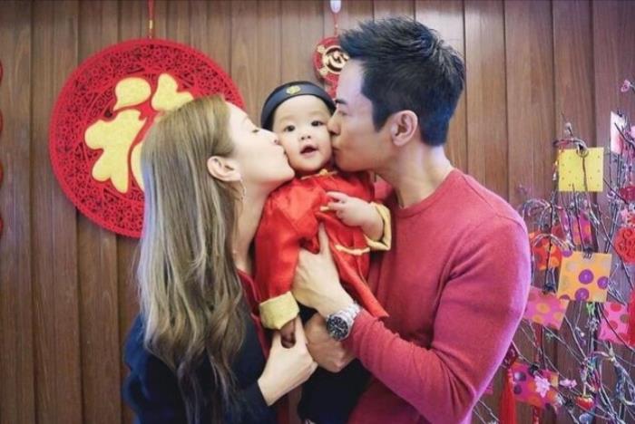 看到郑嘉颖与儿子的合照,几乎都是抱着亲,感觉嘴都离不开儿子了。小娃娃身穿红色的唐装,接受父母爱的洗礼,小嘴微张,看上去也很是高兴。