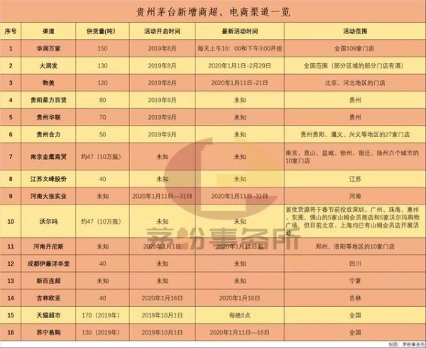 据茅粉事务所的不完全统计,目前已有16个线下商超及电商渠道与茅台合作。
