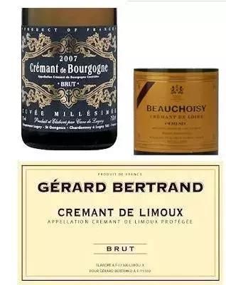 只有在法国香槟产区生产的起泡酒才能叫香槟(Champagne),而在其他产区用酿造香槟的方法酿造的起泡酒就叫做法国起泡酒(Crémant)。