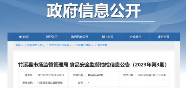 中国质量新闻网讯 2023年5月19日,湖北省竹溪县市场监督管理局发布食品安全监督抽检信息公告(2023年第3期)。