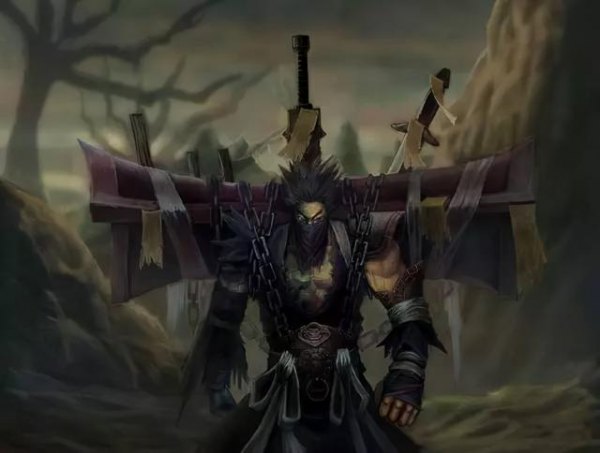 第一次见他的时候,是在洛道。洛道真不是个好地方,永远都是土黄色的天空,压得人喘不过气。如果不是因为跟着剧情升级,怕是根本不想在那里久待。那时,我正做着任务,远远地看见尘土飞扬的大道上有个高大的人影步履蹒跚地走着,背后背着的东西在昏暗的环境中显得尤为恐怖,如果没有看错的话,应该是一具木棺。
