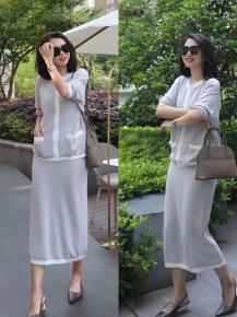 高级灰柔和,平静,稳重,和谐,用在穿搭上质感有光泽,折现在黄黑皮肤上也能抛开一些暗沉无光,多出一些靓丽的光泽感出来。