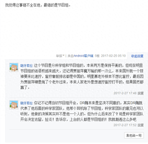 贾立平胜之不武,但是现场说他也接受重赛,所以我也不说什么了。小黄人气走了,估计因为节目组有包庇之嫌。也确实如此,一个明显的地方就是,听音盲拧没有邀请任何裁判,而后面的速拧则是邀请了国际赛事的裁判,明显就是区别对待,黑幕的可能性很大。节目组还特意狡辩,说比赛肯定和正规比赛有区别,但一定公正。那么我就想问了,听音盲拧这个项目为什么就请不到裁判?忘了?没钱?估计是裁判听了你们的规则后吓跑了吧?