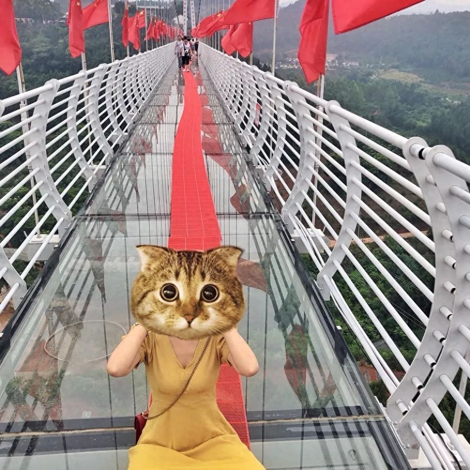 用了三层二公分厚的夹胶玻璃修建而成,整座桥可同时承载最少1000人同时通过,洋气了!也采用的5D技术,可以感受玻璃瞬间“破碎”的赶脚。