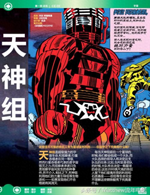 宇宙天神组是漫威漫画中五大神永恒(从未出现过的超越逻辑真本体)所创造的种族,(它们最早设定为就是现实世界中所有国家、不同时间、不同文明、已经出现的、未出现的一切领域的一切过去、现在、未来所有作者总和)理论上有无数位天神族,但一直到目前出场过的天神族仅仅只有1265个。(只存在于文字设定上的天神组也有很多)天神组可以随便修改任何设定、逻辑概念(可以是任何人心目中的任何文字设定,无论多么矛盾)。漫威对于任何角色(哪怕是一次性角色)没有明确表明其上限是什么,天神组也是如此。