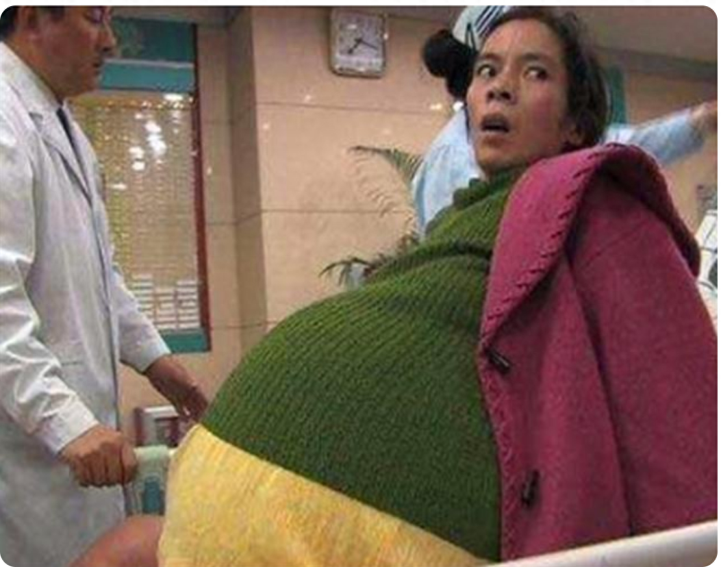 一名农村妇女怀孕12个月,早已超过预产期2个月,每天挺着一颗60斤重的大肚子,却迟迟没有分娩的反应。没办法,家人只好把她送去医院查个究竟。医生B超居然找不到孩子,60斤的大肚子究竟装的是什么?