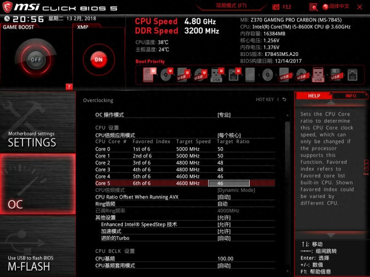 1. 8600K建议先尝试 1.3V 全核心5.0g,如果能通过AIDA64 FPU测试,再考虑慢慢提高频率或者降低电压。如果极限是1.32V 5.3g,那最后稳定使用可以设置成 5.1G 1.32V,比极限低一些就行。