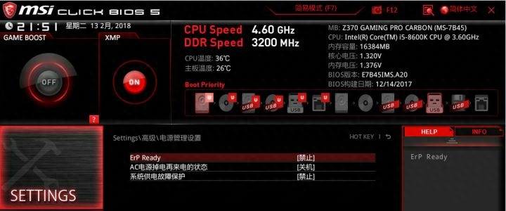 SETTINGS选项,ErP Ready,微星技嘉主板是默认禁止。华硕华擎是默认开启。