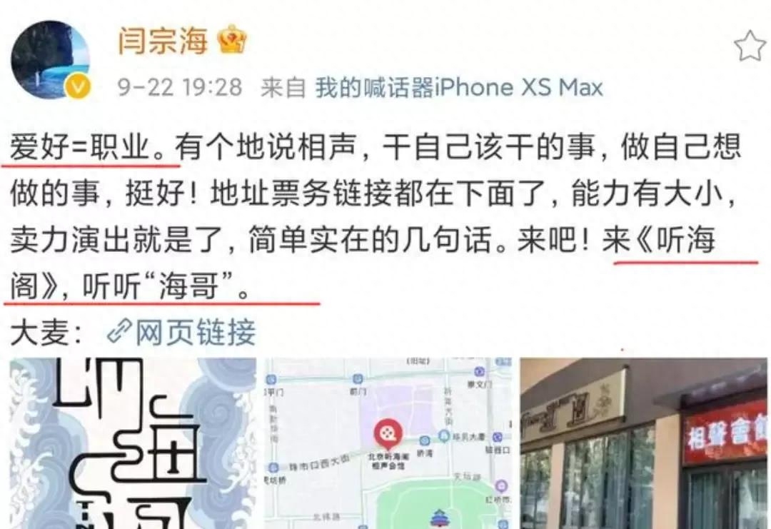就在大家都快要淡忘了这位原来德云社大师兄闫云达的时候,这个人突然又出现,而且在北京开设了自己的剧场《听海阁》。
